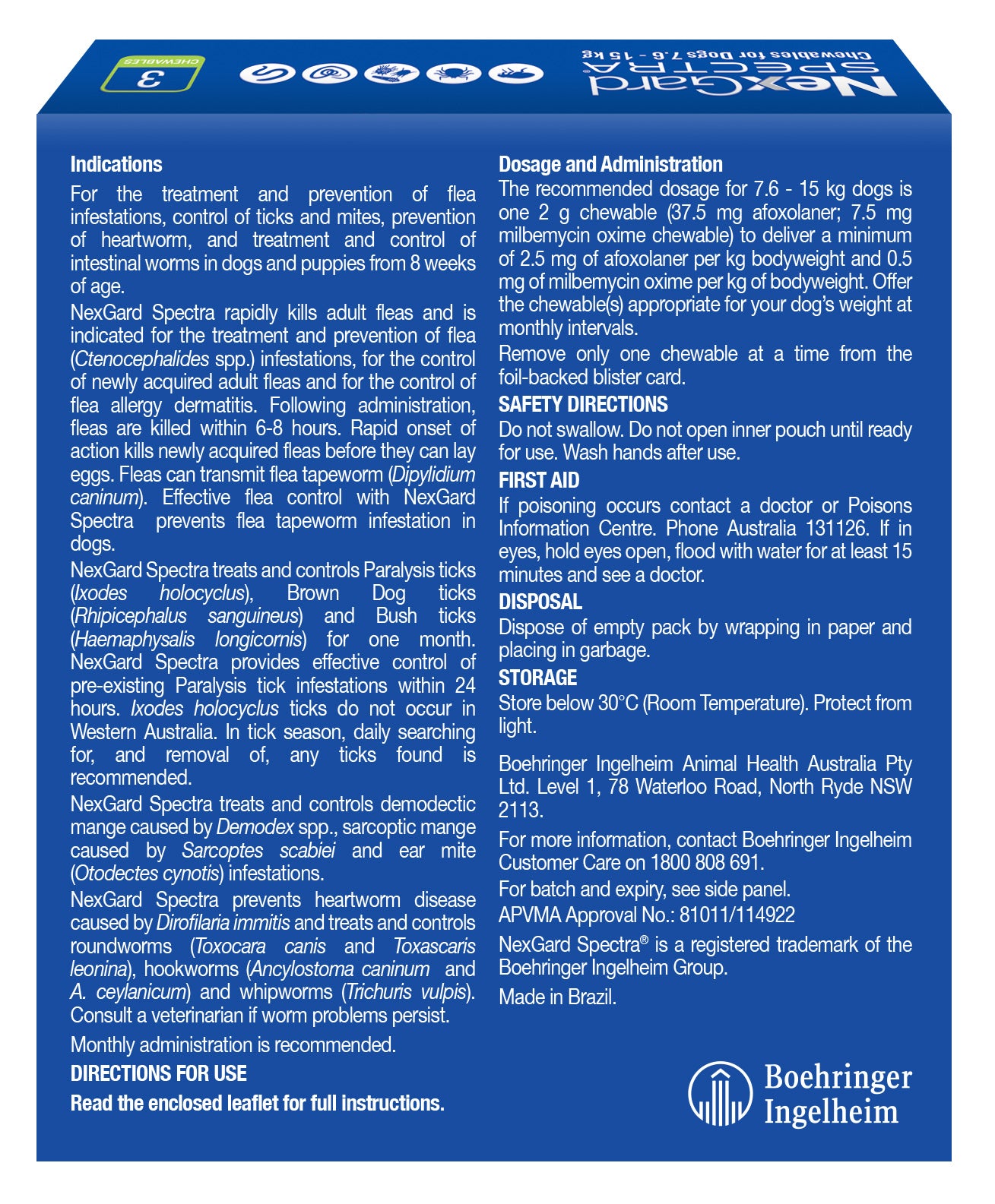 NexGard Spectra is a convenient monthly chew that fits easily into your dog’s regular care routine. Specially designed for medium-sized dogs, it’s a beef-flavored chew enjoyed by many pets.
