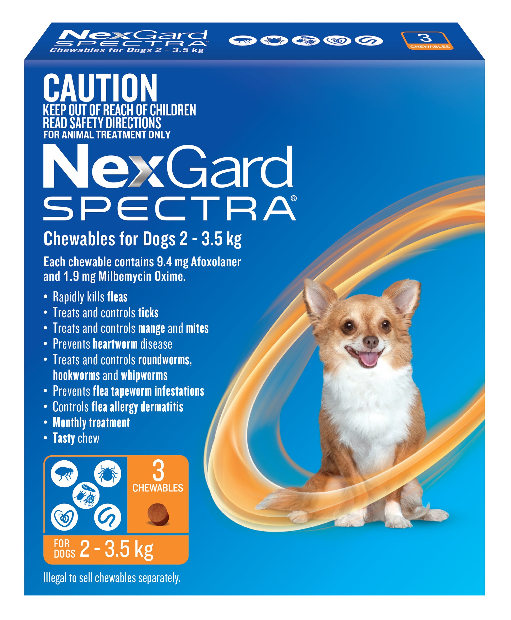NexGard Spectra for Extra Small Dogs 4.4 - 7.7lbs Orange